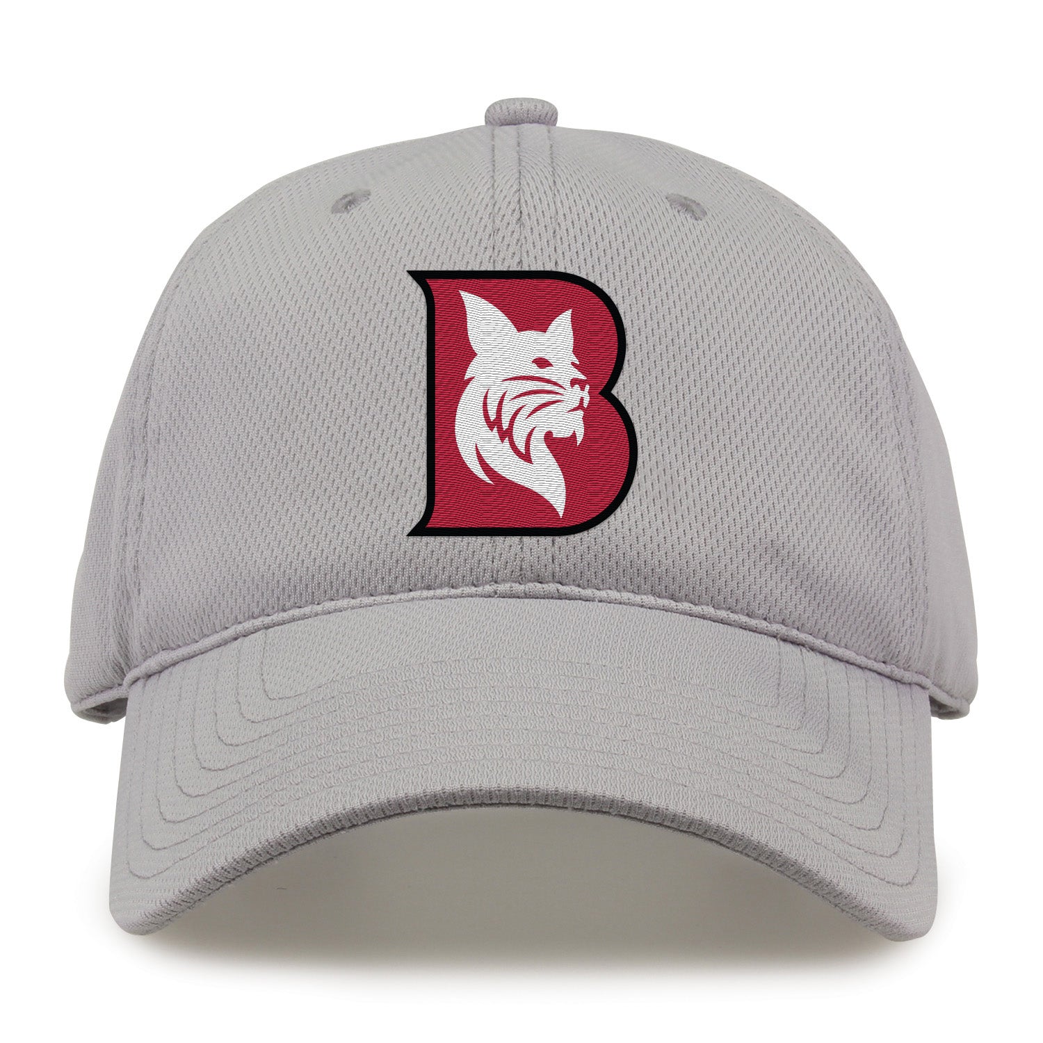 - Embroidered "B" Bobcat with black outline and garnet/white colors