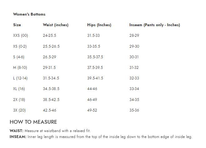 - Size Chart
