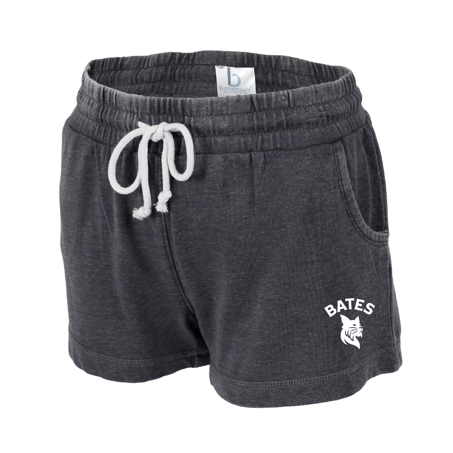 Rally Shorts, Charcoal with White waistband, BATES over Bobcat logo